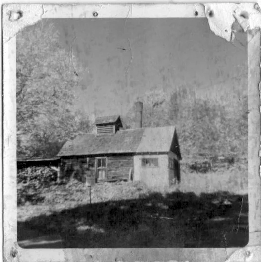 Sugar house facing east and Golf Course Road before the 1963 addition. Note the wooden shingle roof.